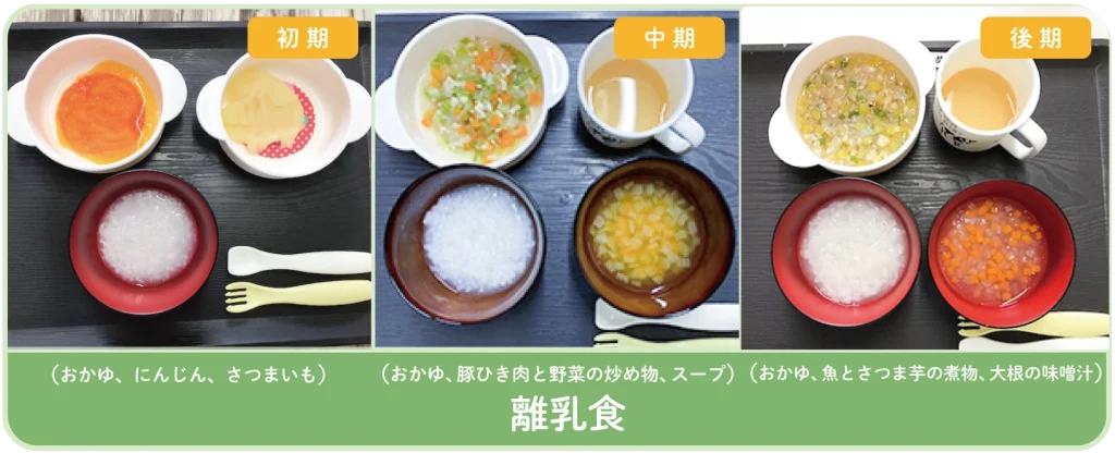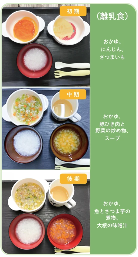 ・離乳食は、お子さまの成長によって段階が異なりますので、ご家庭と相談しなが ら進めます。